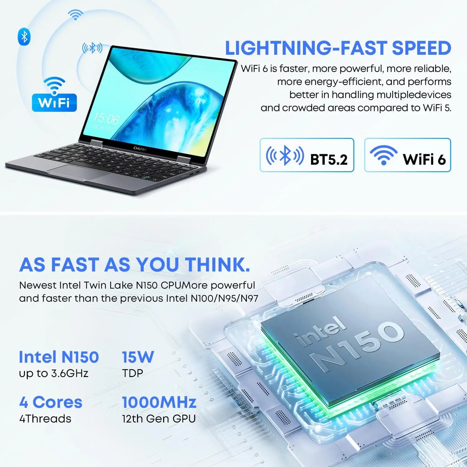 MiniBook X 2-in-1 Laptop Intel N150(up to 3.6GHz) 512GB ROM 12GB/16GB LPDDR5 10.51" 2K FHD IPS Windows 11 Laptops